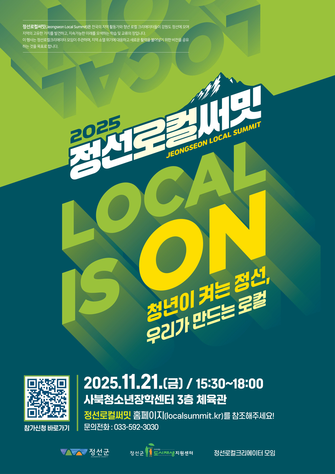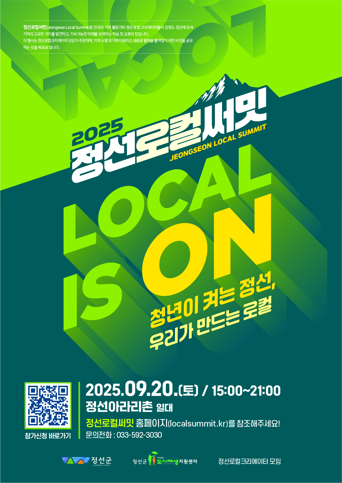 올해 정선로컬써밋은 <Local is On – 청년이 켜는 정선, 우리가 만드는 로컬>을 다룹니다.
